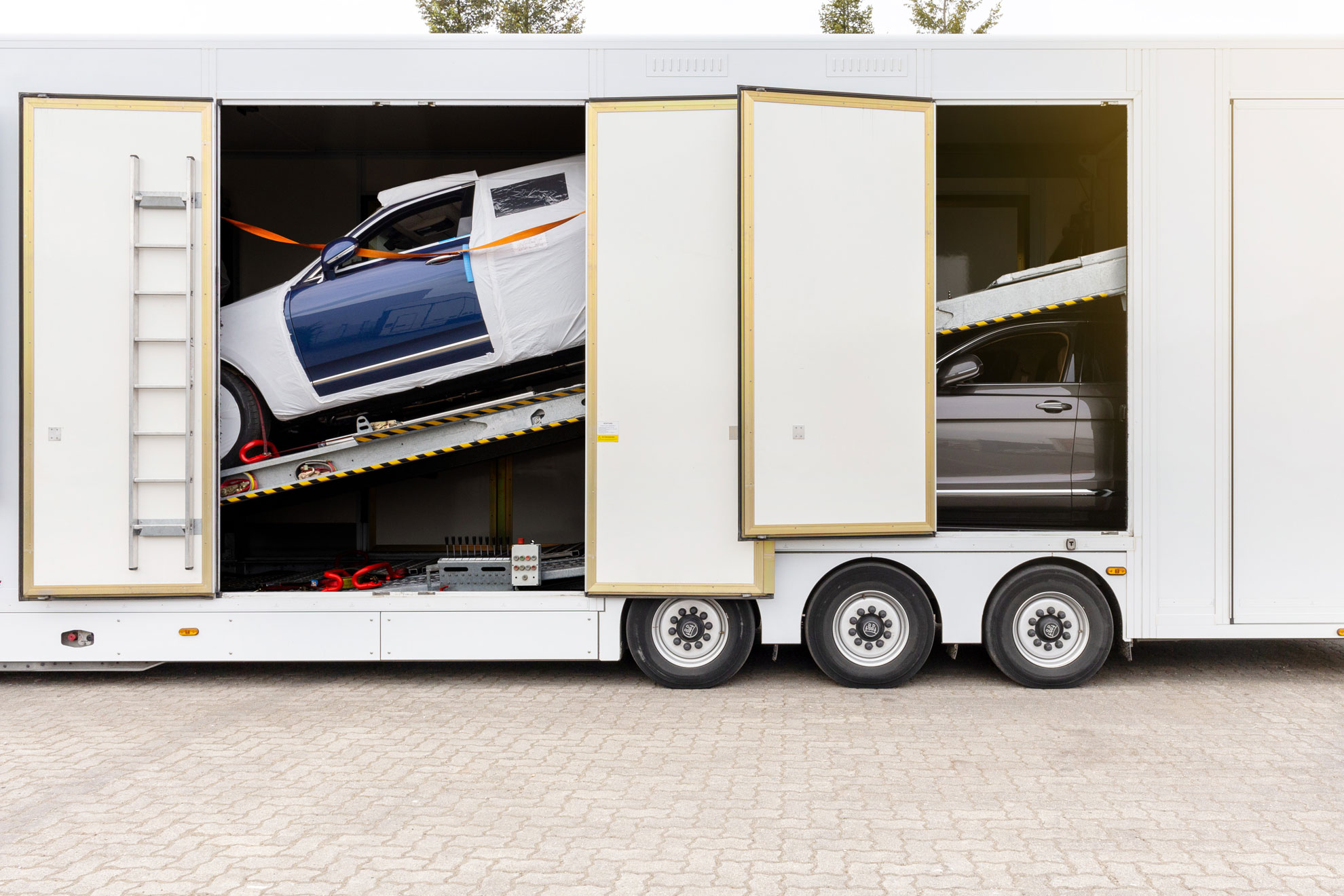 We have developed a custom-built loading ramp that allows even extremely low vehicles to be driven effortlessly into our enclosed transporters – without removing any body panels or risking damage to vehicle components. Whether it’s a supercar, prototype or luxury model – our specially designed ramp ensures a smooth and safe loading process every time.